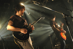 結局ケイヴ・インはメジャーの水と合わず、インディー・シーンへ戻ってきた。最初に『エピセンター』を聴いた時には「このバンドが21世紀のロックを動かす!」と力こぶを作ったものの、その予想はすっかり外れたわけだ。しかし今はその方がよかったと思っている。もはや意識的なリスナーにとって、メジャーとインディーに大して差はない。解散の危機を乗り越え、アルバム『パーフェクト・ピッチ・ブラック』を完成させた彼らは、直後にドラマーのJRが怪我で離脱を余儀無くされる事態に見舞われるも、盟友コンヴァージのベン・コラーを迎え入れてツアーを開始、2006年3月に再来日を果たす。そこで目撃できたタフなたたずまいは、これからもコンヴァージやアイシスらとともに、アンダーグラウンドのロック・シーンを面白くしていってくれるだろうと確信させてくれた。その後、ベンがコンヴァージとしての活動に忙しくなったことを受けて、他の3人はそれぞれ別プロジェクトに勤しんでいるが(スティーヴンは新たなソロ・アルバム『オクターヴ・ミュージアム』をリリース)、ケイヴ・インとしては、2007年の春に再集結する予定だという。彼らから新たな音が届けられる日を楽しみに待とう。 「僕たち全員、自分たちが買ったり聴いたりするレコードに、とても敏感なことは確かだよ。特に前作を作って以降、それまで聴いたことがなかったような新しいジャンルにハマッてる。それこそブラック・フラッグからボブ・ディランまでね。そういうのが全部、新曲に影響を与えるはずさ」 05年に新作『パーフェクト・ピッチ・ブラック』を出して、その後は北米〜ヨーロッパ、そして日本と今日まで長いツアーを続けてきたわけですが、まずはひとりずつ感想を聞かせてください。 Caleb:調子はいいと思う。少なくとも俺はいいよ! ただ正直、今夜の公演を最後にツアーが終わって、やっと家に帰れるのは嬉しいな(笑)。それでも、このアルバムのツアーはずっと本当に調子が良くて、ツアーしててこんなに楽しかったのってホント久し振りだから、その点助かってるよ。 Ben:俺は……えーと、めちゃくちゃ楽しかったけど、そろそろ家に帰ってしばらくゆっくりするのも全然やぶさかじゃないっていうか。これで去年の9月から数えて、もう5度目のツアーなんだよ。俺はコンヴァージとケイヴ・インの両方でツアーをやってるからさ。だからもう、地元でしばらくのんびりする心の準備は、すっかりできてるよ(笑)。 Adam:僕も、家に帰れるのは嬉しくてしょうがないね。ここのところずっとツアーの連続だったけど、いったんツアーのことを頭から追い払ってた時期があったりしたせいで、骨の折れることも多かったんだ。だから地元でゆっくりできるのは本当に嬉しいし、それ以上に楽しみなのが新しいアルバムのレコーディングだね。メンバー全員『パーフェクト・ピッチ・ブラック』からさらに進化してると思うし、次の段階に早く進みたいんだ。 Stephen:もう少しだけショッピングしたら、あとはもう帰るだけだよ。キディランドに行きたいな。 (笑)。今回のツアーで、新しいドラマーとしてベンが加わったことと、ケイラブが以前よりリード・ヴォーカルをとるようになったこと以外に、以前までのツアーと特に変わったことはありますか? あるとしたら、それはどんな点? Caleb:んー……"PMA"になった、かな……いや、やっぱわかんないや。 Adam:ハハハハ! なんですって? PMA? 全員:"Positive Mental Attitude"(前向きな心構え)!(笑) Adam:もうひとつの変化が、このバンドの存在のありがたさを前よりも意識するようになったってことだね。だから前回に日本に来た時とは、俺たちの考え方も違っているかもしれない。今の俺たちは、みんなこのバンドを楽しんでるし、自分の時間をこのバンドにつぎ込んでるからね。 Caleb:そう、バンドの中の労働観が変わったっていうのかな。ツアーに関して言えば、ものごとをとても慎重に判断するようになったね。ツアーってヘタすると、すごい負担になりかねないし、結局ネガティヴな影響しか残らない、なんてことにもなりかねないんだ。だから、必要なことだけをきっちりやるようにしてるっていうか、ツアーが面白くなくなってきたり必要性が低くなってきたら、その時点で1度ストップしてひと休みして、レコードを作ったり曲を作ったりするようにしたんだよ。ずっとむやみやたらに走り続けるんじゃなくてね。 メジャー在籍時は本当に延々ツアーさせられてましたもんね。さて、今回の来日記念として、日本では過去のアルバムが再発売されたわけなんですが、それを購入すると、ベンが加入してから作られた新曲が2曲もらえるようになってますよね。この"Shapeshifter"と"Dead already"は大体いつぐらいにできて、どんな感じでレコーディングされたのですか? Ben:去年の夏だね。 Adam:今回のツアーでプレイしてる曲をベンに覚えてもらうために2週間ほどみんなで集まった時に、勢いで2曲