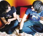 ちなみに、DEATH FROM ABOVE 1979では、作曲はどのようにして行なわれるのでしょうか? Sebastien:基本的にはジェシーがベース・ラインと曲全体のだいたいのアイディアを作って、それを一緒にプレイしてみるところから始まる。アレンジは大体いつもすんなりと出来上がるね。その時にヴォーカル・パートができる時もあれば、後から付けられる時もある。このアルバムに関しては、レコーディングがほぼ終わった後にヴォーカルが付けられた曲がほとんどだね。ジェシーがリフを思い付いて、それに合わせて自分達のアイディアを話し合いながら練習して、ヴォーカルの基本的なメロディやリズムを作って、その後、曲を完成させるという感じだよ。 わかりました。ところで、バンド名をDEATH FROM ABOVEと決めた後に、ニューヨークのプロデューサー・チーム=DFAからクレームが入ったために名前に1979をつけるようにしたという逸話がありますよね。この時の簡単な事実経過を教えてください。 Jesse:最初の3年間は何も言ってこなかったんだ。つまり、それなりに知られるようになるまで、彼らにとって俺達はどうでもいい存在だったんだけど、「DEATH FROM ABOVE」とインターネットで検索した時に俺達のことがよく出てくるようになって、それでだんだん心配になってきたんだろうな。実は彼らもレーベル名を商標登録していたわけじゃないんだよ。俺達も自分達のバンド名を登録なんかしなくてもいいと思っていた。でも、俺達がアメリカのAtlantic Recordsと契約しようとしていた時に、連中が商標登録の手続きを始めたとかで、それに関する通知書を俺達に送ってきたんだよ。その時点ではまだ登録は済んでなかったし、俺達も彼らと同じくらい存在してきて活動実績もあったし、それに先方はDEATH FROM ABOVEではなくDFAと表記してたわけで、たとえ裁判になっても俺達が勝つ確率も高かったから、法廷まで持っていってもよかったんだよね。実際のところ、今でもDFAはまだ商標登録されていないと思うな。でも、長い期間をかけて闘うことになると、こちらの活動に支障が出てしまいかねなかったから、裁判は起こさないで名前に1979をつけたのさ。まあ、その事件のおかげでインタビューされる機会も増えたわけだから、俺達にとってはプラスに働いたし、それなりに価値あることだったと思いたいな。 Sebastien:やっぱり当時は、フラストレーションを感じてイライラしたよ。あんな経験をしなくちゃならないのは不快だった。彼らの成功を利用していると思われたこともイヤだったね。俺達は自分自身の力だけで全てをやっていたのにさ。彼らのやっていることなんて少しも興味なかったから、彼らに憧れていたわけでもないし、たまたま名前に関する同じアイディアが、ほとんど同時期に2組の間で思いつかれたってだけの話なんだ。それを彼らが大騒ぎしたってわけ。でも、もう終わったことさ。 新たに付け加えられた1979という数字については、セバスチャンが「1979は俺が生まれた年/1979は『OFF THE WALL』の年/1979は『PLEASURE PRINCIPLE』の年/1979は最後のクールな10年間の最後の年/1979と俺の腕には刻まれている/1979と俺の腕には刻まれている/1979と俺のファッキンな腕には刻まれている」という文章を書いていますが、この年号に対して思い入れる理由をもう少し詳しく教えてください。本当に1979と腕に入れ墨を入れているのですか? Sebastien:ああ、ウソじゃないよ(と言って、左腕の肘下内側に入っている入れ墨を見せる)。70年代は音楽にとって本当にエキサイティングで重要な時代だったと思う。様々なことが起こり始めた時代だったしね。その時にあった感性(美学)が80年代になって変わっていってしまった。プロダクションの価値とかが変わり始めたんだ。だから、1979年は2つの重要な音楽の変化の発端を示す年を象徴している。アナログのナチュラルなレコーディング方法からエレクトロニック・レコーディングに変わっていった年も象徴しているし、興味深いレコードが何枚もリリースされた年でもあるんだよ。 「クールな10年の最後の年」とも書いていますが、「自分達がクールな時代を取り戻す」という意識はあったりするのでしょうか? Sebastien:そこまでシリアスな意図はないよ。ただバンド名の最後に何か付ける言葉を捜していて、1979と付けることでバンド名に関する問題にケリを付けただけさ。No.2と付けるよりもマシだからね。 Jesse:1979という数字は、俺達のサウンドが当時のようだということを語っていて、このバンドや、このバンドの音楽が矛先を向けている年なんだ。79年はTHE DAMNEDみたいな素晴らしいパンク・バンドのアルバムがリリースされていた年でもあるし、ラップが流行り始めた年でもある。SUGARHILL GANGが出てきた年だし、KRAFTWERKの驚くほど素晴らしいアルバムもあったし、パンク・ロックもあれば、LED ZEPPELINもまだツアーをやっていた。 Sebastien:とんでもない衣装を着てね(笑)。 Jesse:ああ。それにテクノが創り出されたし