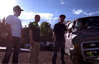 2003年の9月から10月にかけて、イースタンユースはアメリカ合衆国全土をまわるツアーを敢行した。カーシヴとブラッド・ブラザーズに帯同し、30ヵ所にものぼる全米各地の会場を、メンバー自身が運転するバン1台で長距離移動しながら、連日連夜ステージに立ち続けるという強行軍。過去にUSツアーを行なった日本のバンドが全くいないわけではないが、これだけ本格的な「ロード」に挑戦したのは間違いなく彼らが初めてだろう。しかも旅の中盤を過ぎたところで、ハイウェイを走行中に突如バンの前輪シャフトが折れ、横転した後、真っ逆さまになって数百メートルも滑走するという大事故に遭遇。このタフな経験は、彼らに何をもたらしたのか? あらためて振り返ってみたうえで、さらに現在の心境と新たな年への意気込みを語ってもらった。 「定期的にヒドい目に遭った方がいいと思ってる。ヒドい目イコール充実みたいに俺は捉えているので。やる時は気が重いけど、恐れずにどんどん勢いでやっちゃわないと、固まってきちゃうと思うんでね」 最初に、今回これだけ大規模なアメリカ・ツアーに行くことになった経緯についてお聞きしたいのですが。まず02年にカーシヴとのスプリット作品がリリースされて、その流れで彼らと一緒にUSツアーおよび来日公演を行なう計画だったのが、先方の病気のために急遽中止になってしまったということがありましたよね。 吉野:そう、その時は西からシカゴにかけての行程だったんだけどダメになっちゃって、それをカーシヴの人たちが気にしててくれたわけ。で、彼らも復活してアルバムを出して、でっかいツアーをやるから一緒にしない?って言ってきて。で、「おお、やるやるやる」っつって、やることにしたんです。 結果的に、ずいぶん規模が大きくなりましたよね。 吉野:もう向こうまかせ。これが普通、このぐらいの日程は当たり前みたいですよ。 じゃあ、もうこれが当然な感じでスケジュールが出てきて? 吉野:そっちのペースに合わせますよっつったら、こんなになっちゃった。これでも半分くらいしか参加してないからね。(イースタンユースが共同ツアーを離れてからも)この先またびっちりやってるから、彼らは。 で、日本に来て帰ってからまだ続ける、と。 吉野:そう。戻ってすぐまたやるって言ってたから。 イースタンにとっては、連日連夜20回以上っていうのは、過去さすがに経験ないことですよね。 吉野:ないですね。毎日だったもんね。 でも、それをやってみようと思わせたものは? 吉野:……いや、なんか……冒険心ですよ(笑)。どうせやるんだったら、現地の人と同じペースでやった方がいいだろうと思って。ヤツらができるなら俺らにもできるはずだと思ってね。 他のお二方はどうですか? 二宮:いや、もう、面白そうだなと思って。「任せますから」って言って、この日程を出されて、もう、ええ〜っていう場合じゃなくって、で、まぁ、やりますよっつって。 吉野:さすがにスケジュールきっちり出て、それから先どうこうはできんからね。だから考えないようにしてたもん、あんまり(笑)。 二宮:まぁ、キツいだろうなと思うよりも、むしろやってみたら面白いんじゃないかなっていう方が勝ってましたね。あらかじめ「このぐらいのペースになるかもしれないよ」みたいな話は聞いてたんで、覚悟はしてましたし。 田森:やっぱり、スケジュールを渡された時はびっくりしましたね。こんなに連チャンやったこともないですし、まるまる一ヵ月じゃないですか。だから、ずいぶん長いなあ、って。行ったことないところばっかだし。そりゃキツいなぁとは思いましたけど、レコーディングと違って、ちょっと気分的に楽な部分もあったんで、行く前はすごい楽しみでした。行ったら行ったで、予想以上に楽しかったですけどね(笑)。 最初はシカゴから入って……要するに東側の北の方から周り始めた感じですよね? 吉野:中西部ですね。 このツアー序盤はメンバー3人にスタッフ1人の計4人だけでやってたんですよね。 吉野:そうそう、平山さんと俺たち3人だけだったから。ここまでが俺、最高にキツかった。帰りたかったもんね。この後みんなと合流してから、なんかツツーっと抜けたけど、それまでは1日1日すっげぇ苦しかったなぁ……もう街の名前見るだけでムカっと来るもんね。 特にバッファローは「魔の地」と呼ばれてるそうですけども。 吉野:ピークだね、俺はここが。クソは流れねぇしさ。楽屋の便所に戸はねぇし、めちゃめちゃだったな(笑)。 戸はない上に流れないんですか(笑)。 吉野:アコーディオンカーテンみたいのがあって、出番ギリギリにどうしようかなと思ったんだけど、ダメだやっぱりしとこうと思って、したのが悪かったんだよねぇ。水の溜まりが異常に遅かったわけ。そしてもう探しに来るしさ。どこ行ったどこ行ったってなってて。ヤベーもう流れねぇから頼むわ次の人流して、と思って。で、出たんだけど機材はブッ壊