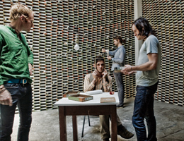 フェイントの『ファシネイション』は、個人的に2008年のベスト作品のひとつだ。リリース直後に実現した久々の再来日公演もライヴ・バンドとしての実力の高さを示す素晴らしい内容だった。その直前に楽屋で行なわれた、唯一の貴重なインタビューを以下にお届け。これまでトッド単独のインタビューは何度かしてきたので、せっかくだからダポーズにも同席してもらいました。 「多くの人々は自分の弱さを隠すために『それについてはもう知っている、あれに関してはもう経験した』って虚勢を張るけど、僕達はそうはなりたくないね」 ようやくフェイントのライヴを再び見ることができてとても嬉しいです。これまで本国〜オーストラリアとツアーを続けてきて、調子も最高なところにきてるんじゃないかと期待しています。久々の日本、昨夜の大阪公演はいかがでしたか? Dapose:最高だったよ。本当はもっと日本でたくさんライヴできたらいいんだけどね。 Todd:そうだね。本当に日本は大好きだよ。 まだ最新のステージを見る前なので、あまり具体的な質問はできないのですが、新作『ファシネイション』の収録曲をライヴでプレイしてみた手応えはいかがですか? Dapose:新曲は良い感じだと思うよ。ここに来る前にアメリカのツアーでも早速やったけど、オーディエンスの反応もいいし、何より自分達が演奏していて楽しいね。 Todd:新しい曲をライヴでプレイするのは、いつだってチャレンジングなことなんだ。僕達の場合、ライブで再現することを想定して曲を書いたりはしないからね。 Dapose:なるべく音源通りに再現しようとはするけど、そのまま忠実に再現する必要は特に無いと思ってる。ライヴではライヴの楽しみ方があってもいいだろうし。 フェイントのライヴと言えば、映像素材を駆使した凝ったステージングで有名ですが、ライヴでプレイする新曲に合わせた映像を全て用意するとなると、レコードを作るだけでなく、映像まで含めて表現が完結するような感覚になってきませんか? Todd:間違いなく、常に色んなアイデアが頭の中をグルグルと廻ってるよ。今回のレコーディングでも映像製作をどんどん進めたかったんだけど、気がついたら、アルバムのボーナス・トラックの製作に予想以上の時間を費やしてしまって、結局はボーナス・トラックも完成させられなかったし、各パートのアレンジや作曲自体がなかなか終わらなかったせいもあって、望んでいたほどそういうマルチメディア的な表現に力を注ぐ事ができなかった。アートワークにはそれなりに時間を費やせたけど、映像の新作は全く出来なかったね。 Dapose:とはいえ、そういうヴィジュアル面での表現というのも、このバンドにとって非常に重要な側面であることに変わりはないよ。今後もビデオを作ったり、映像を使ったステージングにより力を入れていきたいとは思ってる。 では、以前トッドが「ライヴ用に映像作品もたくさん作るから、いずれDVD作品も出したい」と言っていたのですが、その計画についての意欲はまだ持っていますか? Todd:昨日もその件に関してレーベルとメールでやりとりをしたところだったんだけど、結論から言うと、まだ時間はかかりそうだね。もちろん僕らの方は作る意欲は満々なんだけどね。 最新作ではセルフ・プロデュース体制のもとで、メンバー全員が満足するまで徹底的に作業をつきつめることができたとのことですが、ソングライティング〜アレンジメント〜レコーディングのプロセスを通じて5人が完全に民主主義的であることを貫き通すというのも、なかなか難しいのではないかと思います。フェイントでは一般的にどのように曲が完成していくのか、創作プロセスを教えてもらえますか? Dapose:大抵は、誰かがモチーフを持ってきて、それを各々持ち帰って曲にしてきて、みんなでそれぞれのヴァージョンを聴き比べながら1つの曲に仕上げるっていうパターンが多いかな。だから、1つの曲でも、必ず色んなバージョンが存在するんだ。まぁ、最終的なOKの判断を下すのはトッドなんだけど。 Todd:残念ながら今まで1度も、インストの曲をまず作ってから、そこに歌だけをのせるっていうパターンが成功した事例がないんだ。だから大抵はヴォーカルのメロディーを作ったうえで曲を作っていくか、ダポーズや他のメンバーが持ってきたパーツを元に歌を考えて、そこからどんどん組み立てていくっていうパターンが多いかもしれないね。 『ファシネイション』収録曲の中にも、アッという間に出来上がってしまった曲と、反対に物凄く時間がかかった曲があるそうですが、両者の代表となるナンバーはどれか、それぞれ教えてください。また、後者はどんな風に手こずったのでしょうか? Todd:そうだねぇ、アルバム最後の曲はとにかく大変だったね。逆に“マシーン・イン・ザ・ゴースト”はアッという間に出来た。 Dapose:“サイコ”や“ギークス・ワー・ライト”はどっちとも言えないというか、もっとライ