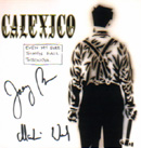 やはり、アンディ・ウェザオールとかシカゴ音響派の人達と交流を持ったことによって、サウンド・プロダクションにおけるクリエイティヴな欲求が以前より深められてきたのでしょうか? Joey:ああ、その通りだね。尊敬するミュージシャンと一緒に仕事をする機会に恵まれたら、インスパイアされる事ばかりだし、そこでは自分のベストを尽くしたいって願うからね。自分の全てを注ぎ込もうって思いながらやるんだ。特に誰かのリミックスをやる時は、自分の仕事であると同時に、原曲を作った人とのコネクションを感じることができる。相互作用というか、その人も僕と同様に満足できるように仕上げようって思うんだ。僕自身、他のミュージシャンが僕らのリミックスをした曲が大好きなんだよ。誰かと繋がっているってことを実感できるからね。 わかりました。ところで今さっき「スタジオは図書館みたいに素晴らしい」って表現してましたけど、あなたは実際に読書が好きなんだと思います。よくあなた達の楽曲は小説からインスピレーションを受けたりすることがあるようですが、作曲の段階から一個のストーリーが思い描かれていることはよくあるのでしょうか? あるとすれば、どうしてそういうスタイルを取るのでしょうか? Joey:そうだなぁ……僕自身、伝統的じゃない歌詞を持った曲に魅力を感じている。例えば“彼/彼女、僕/君”みたいな限定された括りの中で歌われる曲じゃなくて、もっと叙述的で抽象的なストーリーがある歌詞が好きなんだ。まるで詩みたいな歌詞が好きなんだよね。僕の場合、音楽そのものがある種のストーリーを生み出していくっていう場合が多いかもしれない。そして僕は、歌詞をつけることで音楽の中に込められたストーリーを追っていくんだ。音楽がストーリーを語っていて、歌詞はそこにマジックを吹き込む。でも、もちろん全部の曲に歌詞が必要ってわけじゃない。僕らはインスト曲も大好きだからね。そして、物語を綴った楽曲とインストだけの楽曲を両方盛り込むことで、いいコントラストが生まれて、それぞれが際立つとも思ってる。両者があることで、ストーリー的なイリュージョンが感じられて、全体に動きが出てくるんだ。まるで映画のようにね。僕達の音楽は、サウンドトラックみたいだという指摘をよく受ける。流れがあるのが僕らのスタイルの特徴なんだ。 なるほど。例えば女性ヴォーカルをフィーチャーしている曲では、自分達を表現するために、曲の中に女性の声が必要とされる部分があるということなのでしょうか? Joey:ああ、そうかもね。う〜ん、よく分からないけど……男女間の繋がりってどんな物事よりも強力だと思っているし、世界共通のユニヴァーサルな感情なんじゃないのかな? その両者の感情を1曲の中に詰め込んだっていう感覚だね。これはすごく自然な流れなんだ。例えば“ホット・レイル”っていう曲は、セルジュ・ゲンズブールがジェーン・バーキンや……あともう1人……えーと、なんて名前だっけ? 思い出せないなぁ……すごく綺麗な人……ああ、ブリジット・バルドーだ。彼女達をフィーチャーしながら作った曲にインスパイアされたんだ。あとリー・ヘイゼルウッドがナンシー・シナトラを使って作った曲とかね。そういう感覚で曲を作ろうとしたんだ。特に曲をプレイする時って……そうそう、今日もダブル・フェイマスのミユキが僕らと一緒に“バラッド・オブ・ケイブル・ホーグ”をプレイするけど、彼女の場合はフランス語の歌詞を日本語に翻訳して歌うんだよ。僕らはヨーロッパもツアーしたし、今こうして日本にも来てつねづね感じ入っている事なんだけど、人々は言語に強く反応するんだよね。特に自分達自身の言語には強く反応する。強いコネクションを感じるからだと思う。言葉は世界を1つに繋ぐかけ橋になるんだよ。だから僕らは女性ヴォーカルと男性ヴォーカルを両方使うし、ツアーする国々ではその国の言語を使った曲をプレイするんだ。 女性ヴォーカルは曲の中のストーリーで、女性の登場人物のキャラクターを担わせているっていうことなんでしょうか? Joey:そうだね。特に“バラッド・オブ・ケイブル・ホーグ”の中では、女性のキャラクターを女性に歌ってもらってるわけだし。それぞれのキャラクターの視点が見えるように男女を分けているんだ。それによってストーリーがより明確になるんだよ。 また、キャレキシコというバンド名もそうだし、“クリスタル・フロンティア”っていう曲名にしてもそうだと思うんですが、あなた達の表現の中では「国境」というものが大きなテーマ、モチーフになっているようです。どうして国境というテーマに魅かれてしまうのだと思いますか? Joey:ひとつの理由は、アメリカ南西部に住んでいるっていうことと関係していると思う。僕はカリフォルニア南部で育って、約8年くらい前にジョン(・コンヴェルティーノ)や他の友達と共にL.A.からアリゾナ州ト