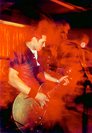 "Don't forget: we are not a DC band! " I enjoyed your debut EP "LEAN BEAT" very much. What does this title "LEAN BEAT" refer to? Jason:It is the name for our style of music. It is frustrating trying to describe what type of music we play. I have been forced to use words that are misleading, or lumping this band in with other bands that are not similar (or that I don't like!). Words like EMO and POST-HARDCORE, or PUNK, or ROCK don't accurately describe the sound or feel of our band, they don't really mean anything. Rather than use these terms, we tried to figure out a new style, a new genre name that not only verbally describes the feel of our music, but could also be a guideline for creating that music. LEAN BEAT means two things: 1) writing songs that are LEAN, concise, focused, direct, free of complicated arrangements. 2) playing those songs with a certain DRIVE to them, leaning with the beat. aggressive songs should slant forward in anticipation of the next snare hit, lazy songs should drag behind the beat, almost drunk... we try to recognise the way a song should be played, or wants to be played. RETiSONiC is currently a 2 piece unit. Do you think you will maintain it as a 2 piece, or do you have plans to add another member? Jason:From the start we wanted to be a three-piece: DRUMS, GUITAR, BASS. But before bringing a third person in, Joe and I wanted to arrange the songs I had written. We still hadn't found a suitable bassist when we were ready to record the LEAN BEAT ep, so I played the basslines. Before leaving for our first tour, we got Jim Kimball to play bass. It worked out great. Live, we are now the three-piece we originally intended to be. Please introduce us to your new partner Joe Gorelick, and let us know how you joined up with him. Jason:Years ago, Joe's previous band GARDEN VARIETY had broken up at the same time BLUETIP had lost a drummer (the first of many!). Though we had never met each other, Joe contacted us by calling Dischord Records. We did one tour with Joe as our drummer... 65 shows in 64 days. By the end, he realized he did not want to move to DC, and quit the band. at the end of last year I contacted Joe to give him a copy of the last Bluetip CD. We got to talking, I described what I wanted to do with music and mentioned I was looking for a drummer. How do you write & arrange songs? Is it a different method than what you did while in BLUETIP? Jason:Very different. Songwriting is hard., For bluetip it was a battle... everyone had different ideas on what kind of songs we should write, or what kind of band we should be. Sometimes that is a good thing, but usually it's just frustrating. I might come in with song parts and a strong opinion on what the arrangement should be, everyone figures out their instruments, then we'd try a thousand different arrangements based on each members whims. songs would be clipped, extended, beaten, voted on, trashed, resurrected... by the end when we're tired and ready to agree, the arrangement would end up sounding almost exactly like what I originally brought in. I think bluetip songs sounded great on our records... the fight seemed worth it. But live it could all become a jumble with everyone playing their individual and intricate parts. With retisonic I wanted to skip some of the wasted energy and frustrations bluetip faced with songwriting. Now I write the song on guitar matched with a vocal melody idea, figure out a simple supportive bassline, and come up with an arrangement that gets the point across. I bring it to Joe and we test the arrangement, fine tune it, alter it some, until the song feels focused. All the while keeping in mind that it needs to sound good in a live setting. At least that's how we did the songs for the EP... who knows how the next batch will be written. The word "RETiSONiC" is also the title of a BLUETIP song. Why did you decide to use it for your new band name? Do you have strong feelings for this word? Jason:The lyrics to the bluetip song "retisonic" were written when I knew bluetip was over. It's an introduction to the new band (like a flyer for an upcoming show?). I made up the word, I like what it sounds like. This EP was produced by your long time friend J Robbins. Do you feel very comfortable working with J? Also, you have worked with Ian Mackaye before. What are the differences between J & Ian as producers? Jason:I love working with J. We seem to like the same things in a recording. He will work exhaustively to make each instrument sound incredible, alone and in concert with the others. Both Bluetip records he worked on were happy, fun recording sessions. I especially enjoyed making "JOIN US", the second Bluetip record, with him. The first bluetip album "DISCHORD No.101" was done with Ian MacKaye. Many people I've met consider that our best album, and Ian's influence had much to do with that. He has a strong idea of WHY to record, he's trying to capture something that maybe the band didn't even know was there, weird moments like sparks that you can't control. but he helps to create a situation where those moments might come out... It has much to do with communication, intent, experimentation, documentation. Not cleaning things up so much. the end result is raw and true. Everyone wants me to compare those two. In my mind both are great producers. the difference? Listen to "DISCHORD No.101" against "JOIN US". Ian and J are both far too sensetive for me to criticize one against the other...We can't have these boys sulking.